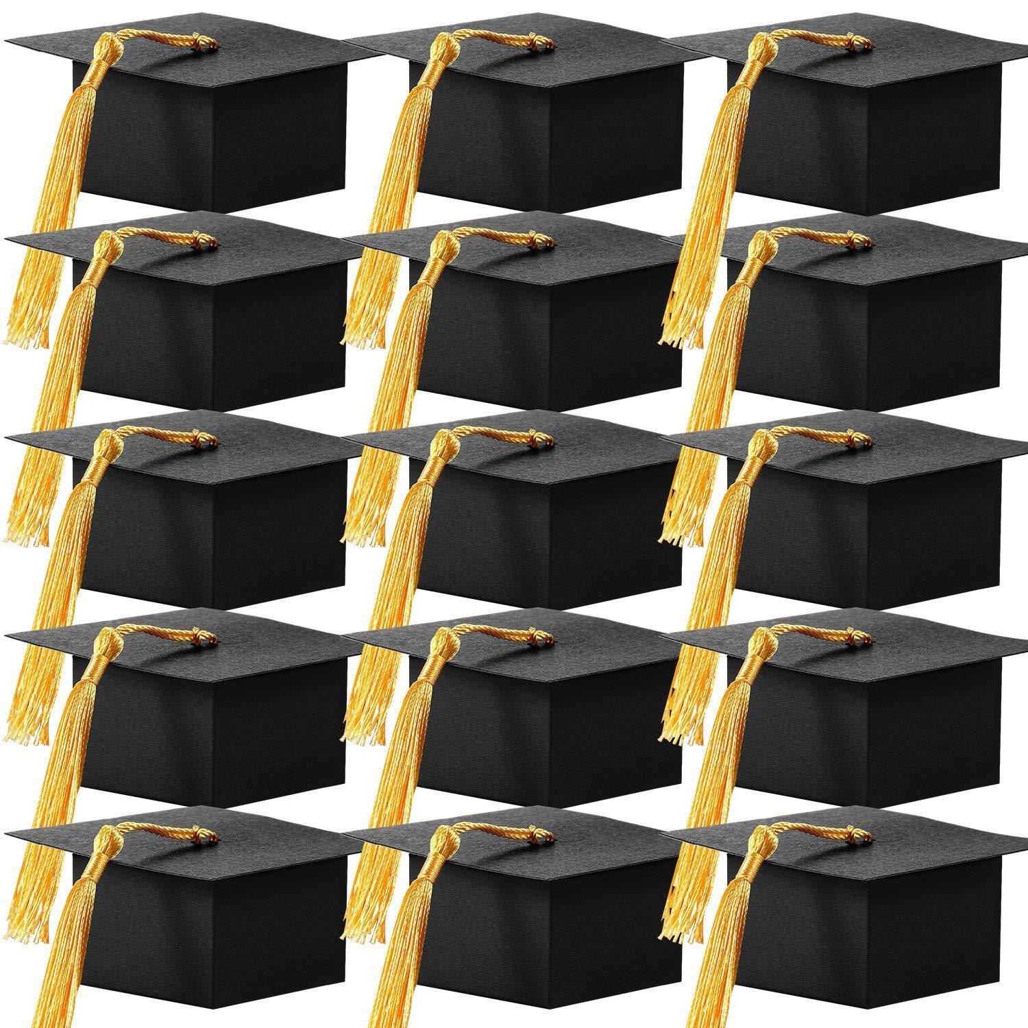 • Graduation gift box set: this set of DIY grad cap gift boxes contains 100 pack of flat boxes, caps, tassels, enough amount for preparing graduation party gifts or favors to your guests