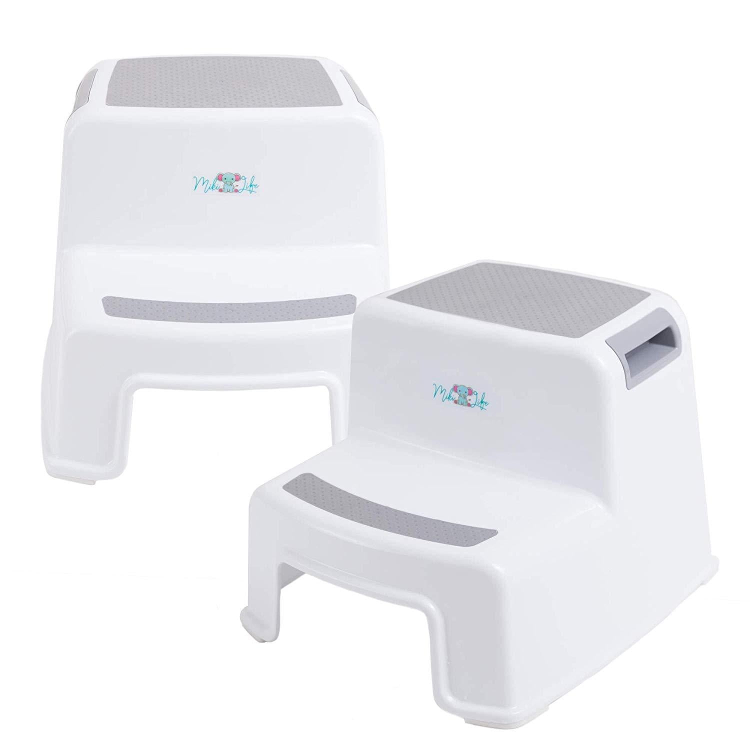 2 Step Stool for Kids | Slip Resistant Soft Grip for Safety | Dual Height and Wide Step with Carrying Handles (1 Pack) by MikiLife