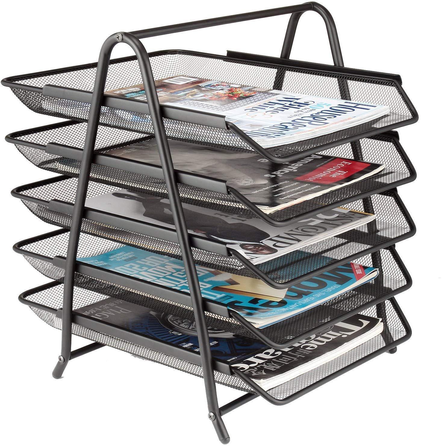5-Tier Mesh Desk Letter Tray Organizer, Samstar File Holder Tray for Home Office, Slide Back and Forth, Black