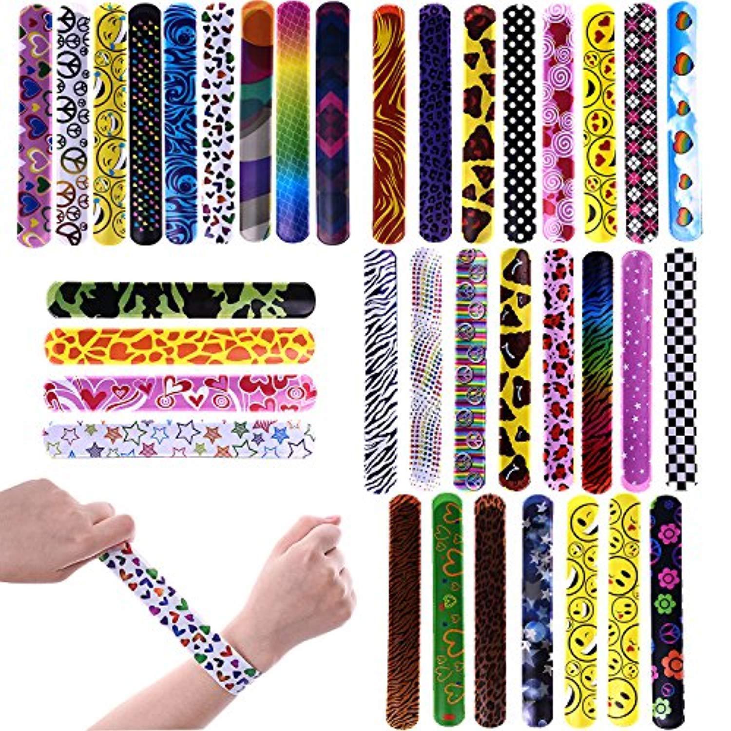 • Includes: This assorted party favor slap bracelets includes 72 slap bracelets. It contains two of each of 36 colors and patterns. Patterns include emoji, hearts, peach signs, animals, and geometric patterns.