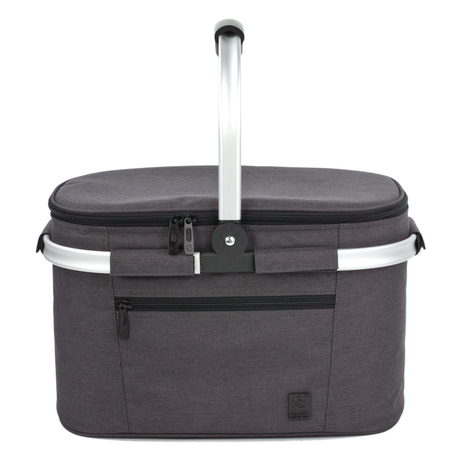 ALLCAMP Large Size Insulated Cooler Bag Folding Collapsible 22L Picnic Basket with Sewn in Frame (Grey)