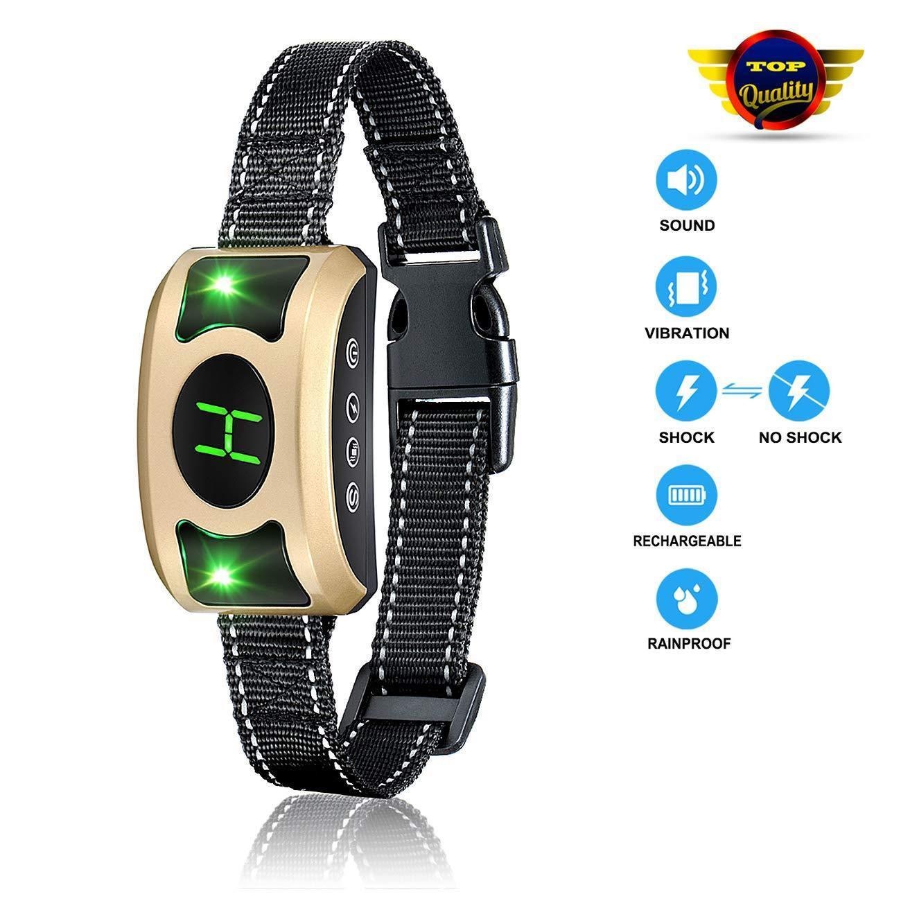 • NEWEST INTELLIGENT DETECTION DOG BARK COLLAR: the no bark collar has 3 levels of sensitivity ( L / M / H) and 3 stop barking modes(beep, vibration and static shock), adjustable 0, L, M, H levels for vibration and shock, can teach and correct your dog stop barking effectively with no harm