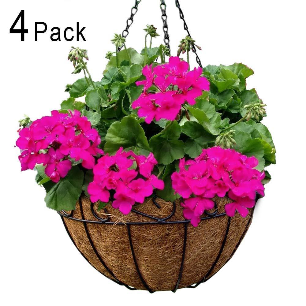 Amagabeli 4 Pack Metal Hanging Planter Basket with Coco Coir Liner 14 Inch Round Wire Plant Holder with Chain Porch Decor Flower Pots Hanger Garden Decoration Indoor Outdoor Watering Hanging Baskets