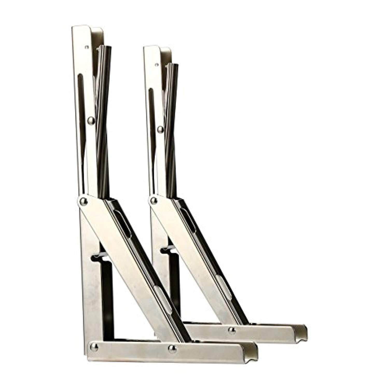 Amarine-Made 2 PCS Heavy Duty Stainless Steel Folding Shelf Bench Table Folding Shelf Bracket, Max Load: 660lb/300kg, Long Release Arm