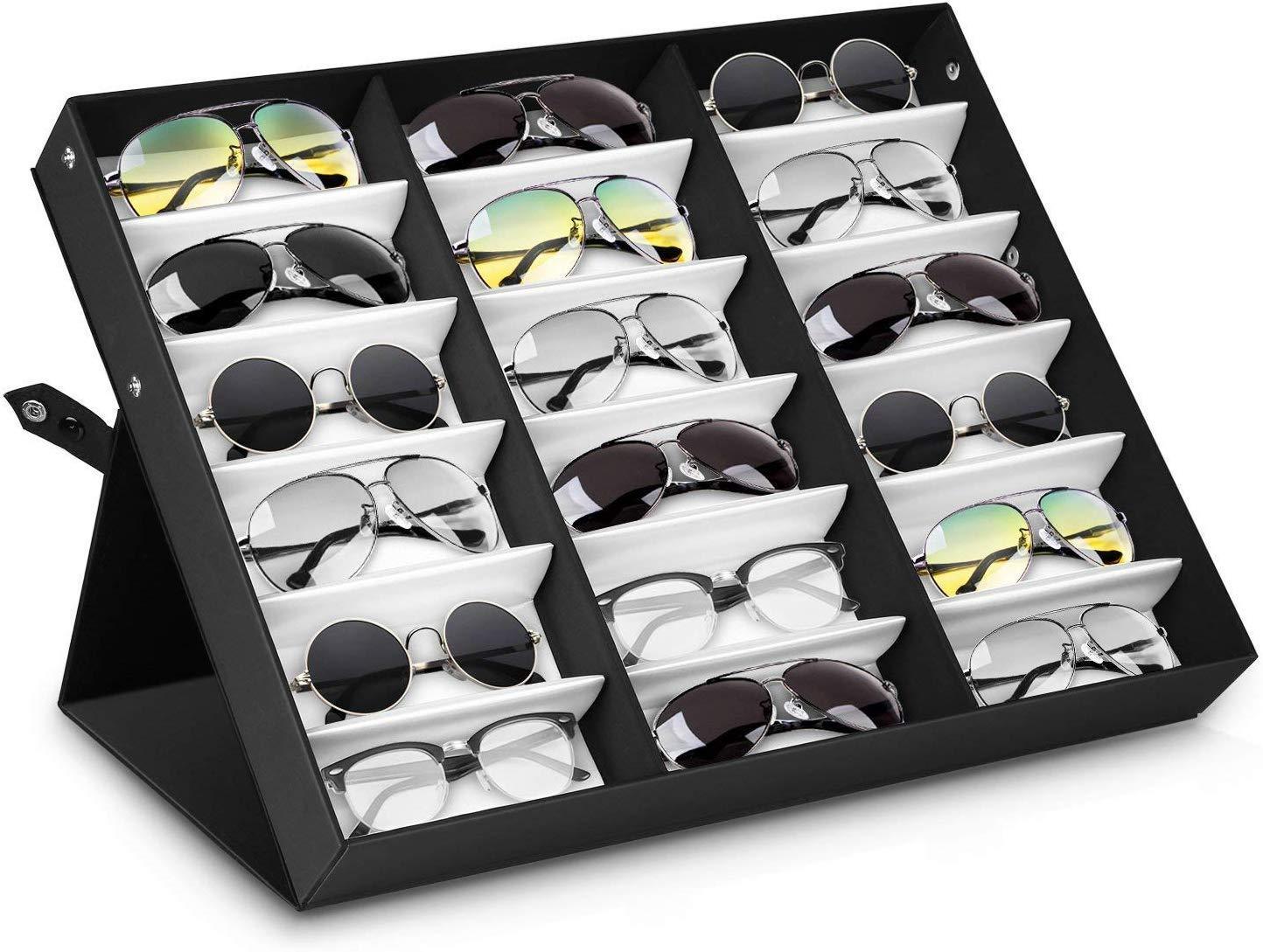 amzdeal Sunglasses Display Case 18 Slot Sunglass Eyewear Display Storage Case Tray Gift for Him Her