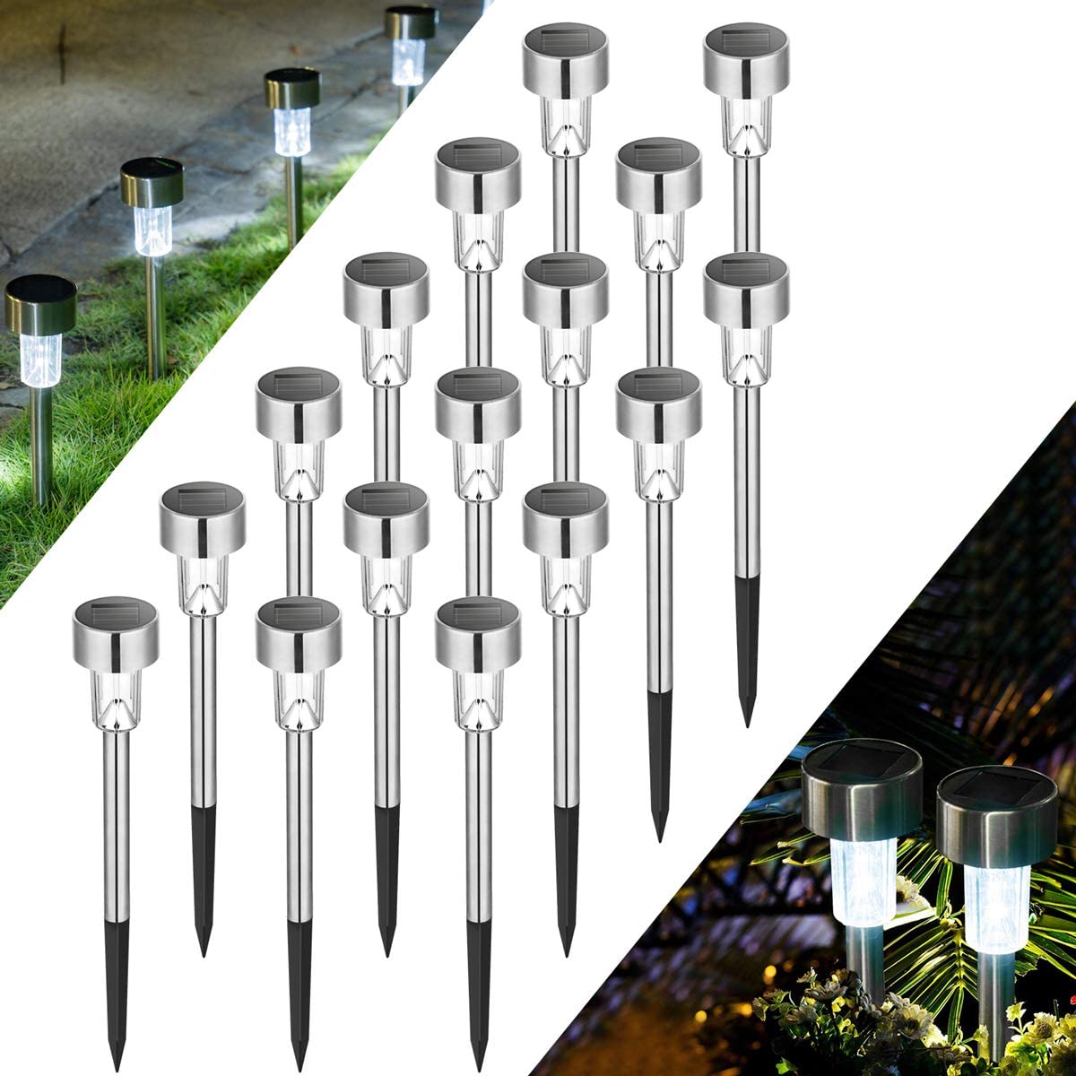 ATHLERIA 16 Pack Solar Lights Outdoor Pathway,Solar Walkway Lights Outdoor,Garden Led Lights for Landscape/Patio/Lawn/Yard/Driveway-Cold White (Stainless Steel)