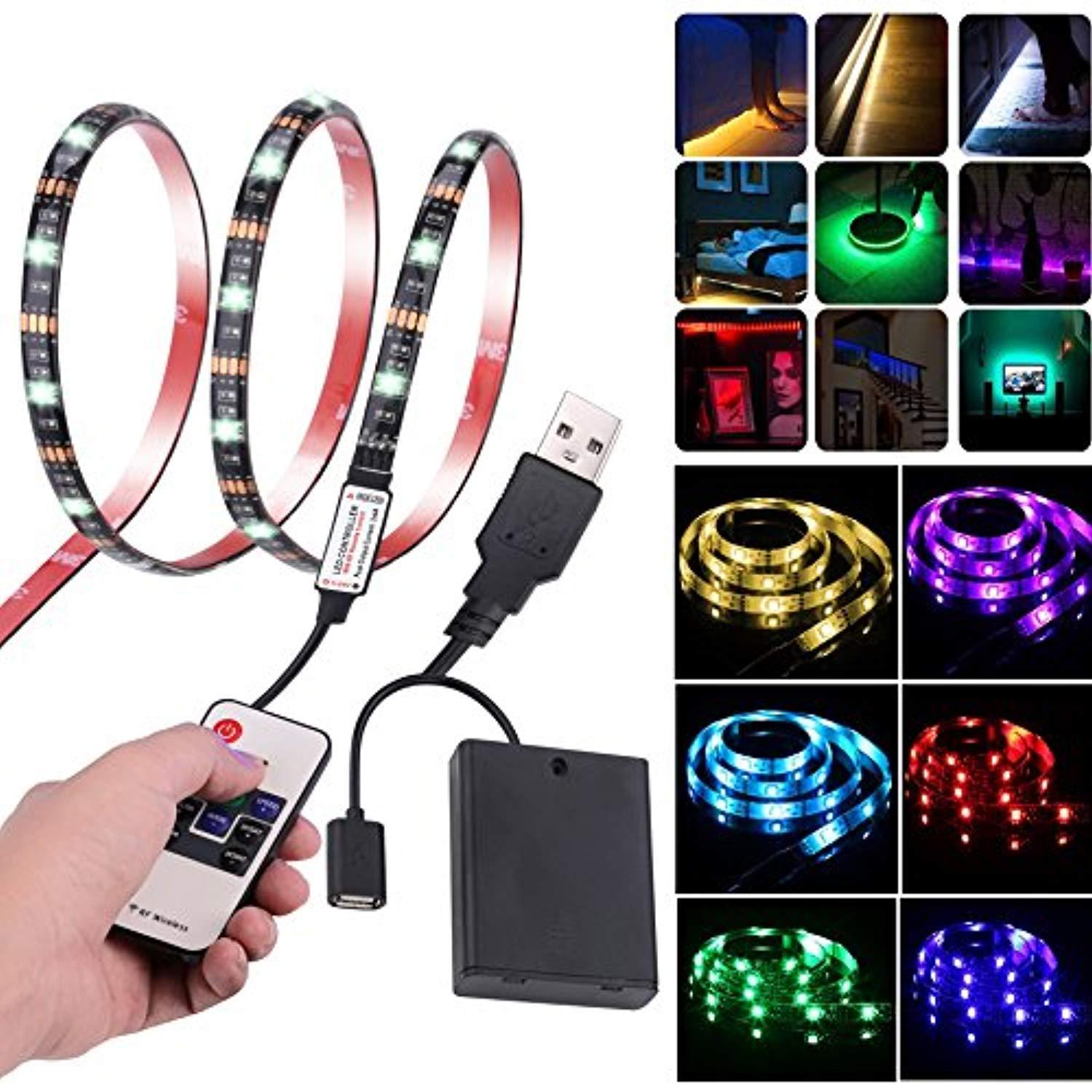 Battery Powered LED Strip Lights, Leimaq Led strip lights Battery Operated USB Powered TV Backlight Led Light Strip With RF Remote Waterproof Led Tape Light Multi Color Changing RGB SMD 5050 Rope Ligh