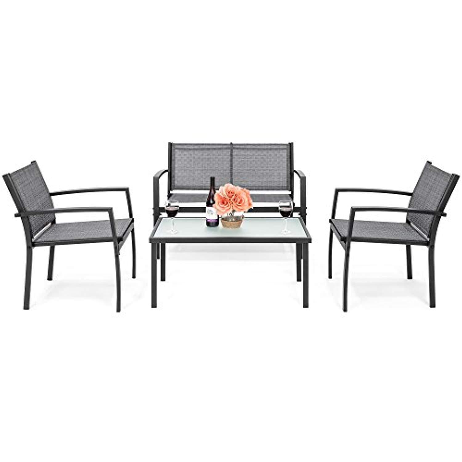 Best Choice Products 4-Piece Patio Metal Conversation Furniture Set w/Loveseat, 2 Chairs, and Glass Coffee Table- Gray