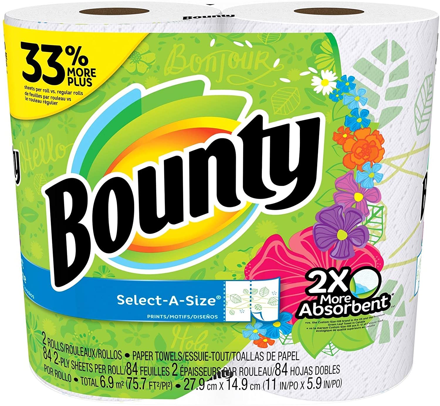 • Plus it comes in a variety of sizes and prints, so you can choose the Bounty roll that's just right for you and your family