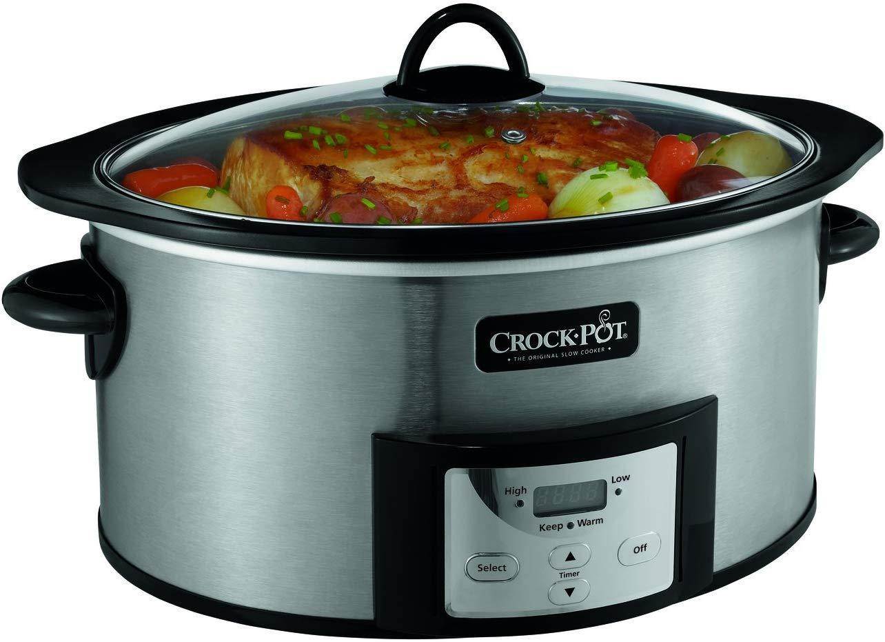 Crockpot SCCPVI600-S 6-Quart Countdown Programmable Oval Slow Cooker with Stove-Top Browning, Stainless Finish