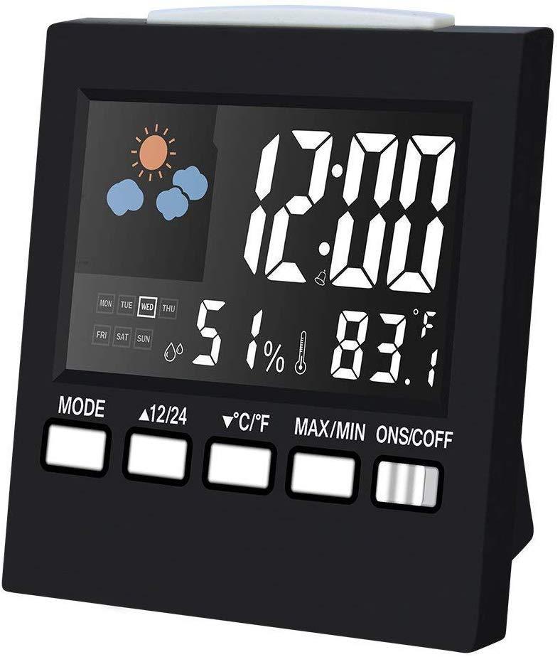 Digital Alarm Clock Led Desk Clock with Date Temperature humidity meter Backlight & Weather Channel Portable Travel