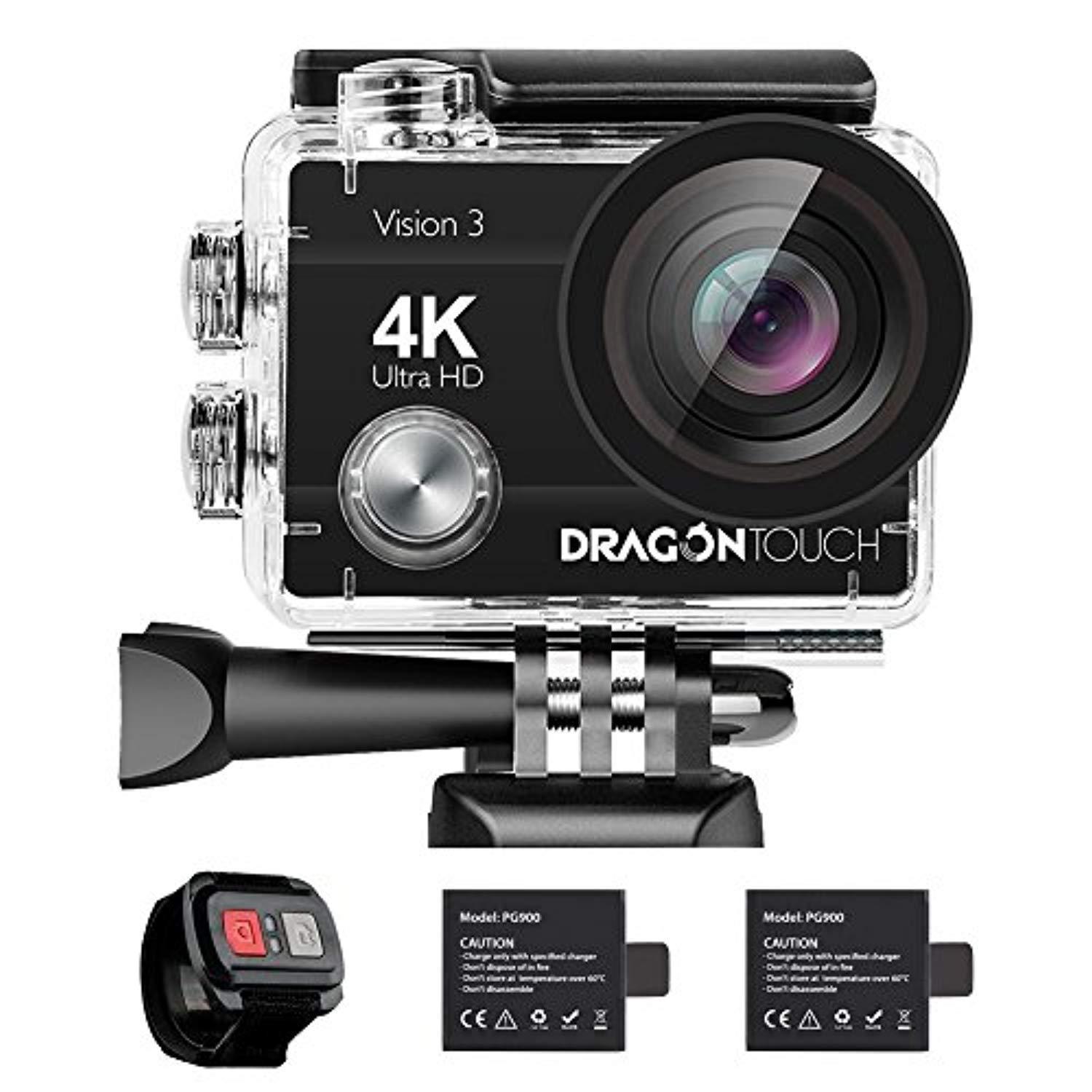 Dragon Touch 4K Action Camera 16MP Sony Sensor Vision 3 Underwater Waterproof Camera 170° Wide Angle WiFi Sports Cam with Remote 2 Batteries and Mounting Accessories Kit