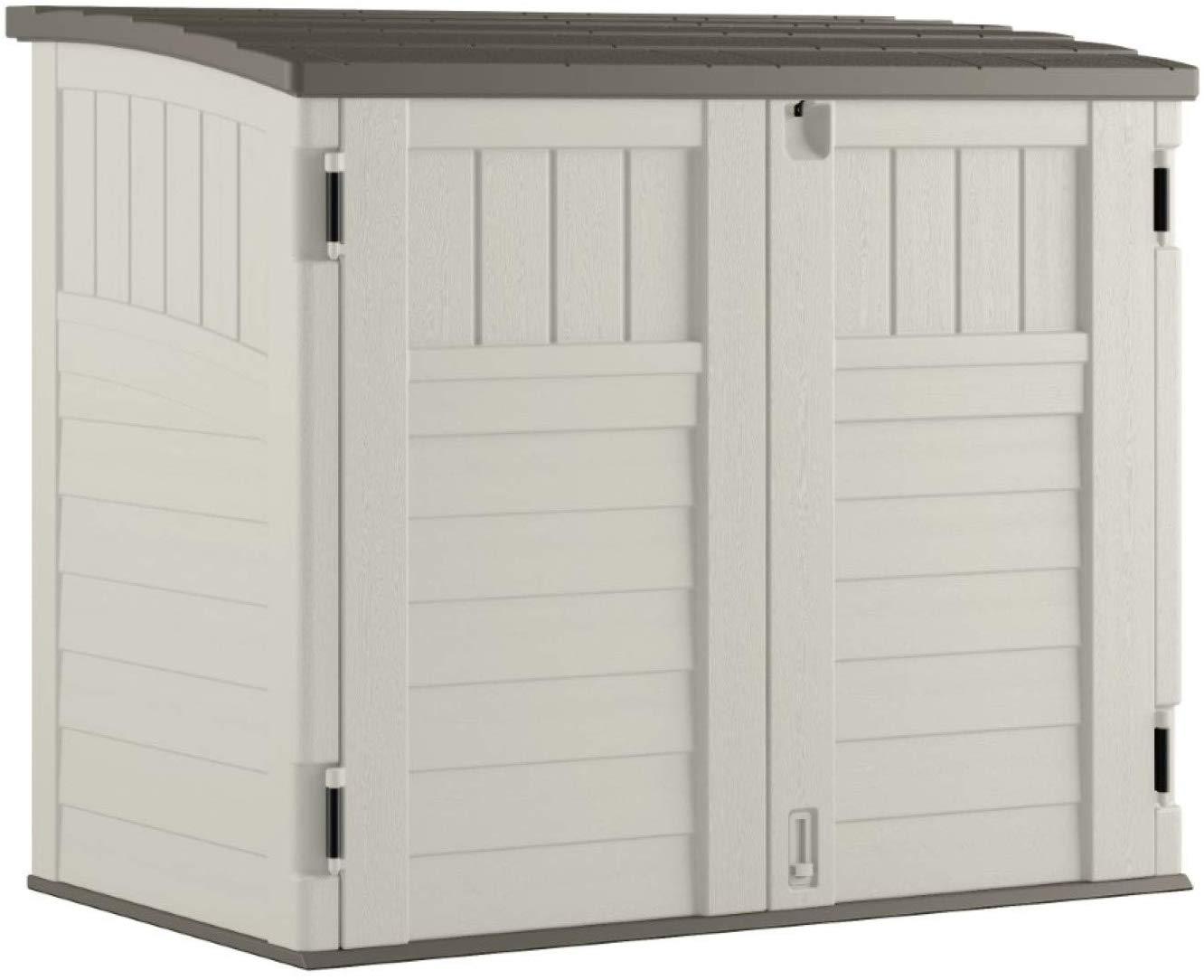 Durable Double-wall Resin Construction and Reinforced Floor Horizontal Outdoor Storage Shed, Vanilla and Stoney, 34 Cubic Feet Idea for Patio, Deck, Yard, Porch, Garage, and Shed Storage
