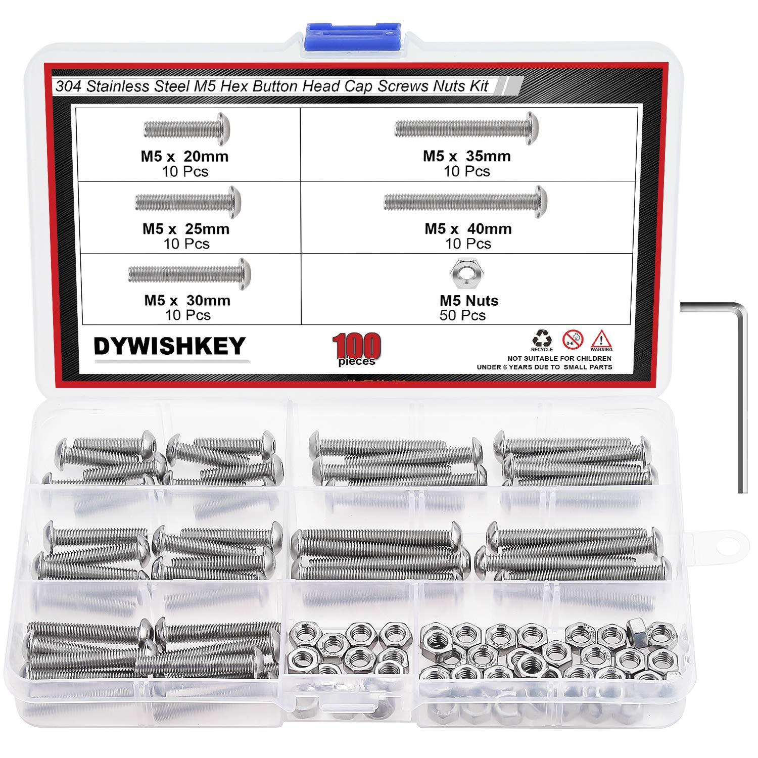 【Total: 100 pieces, M5 Stainless Steel 304 Hex Button Head Cap Bolts Nuts】