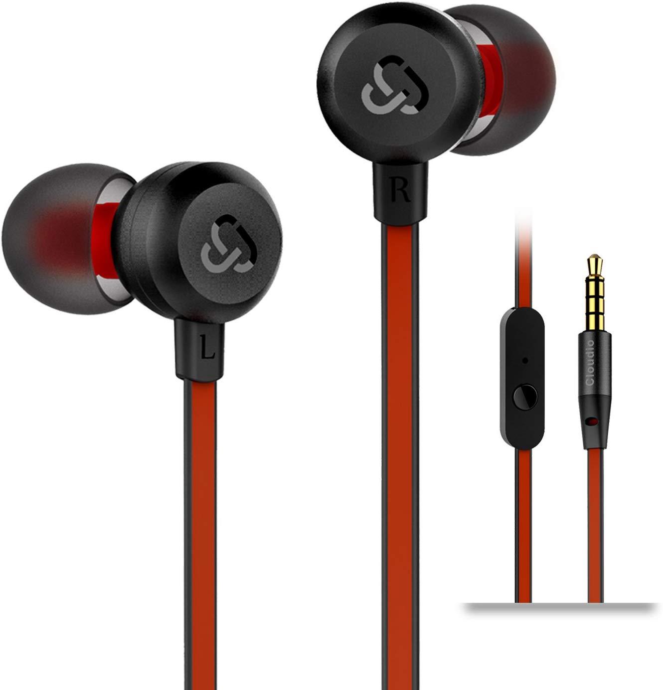 Earphones Cloudio J1 Noise Cancelling Earbuds in Ear Headphones with Microphone Noise Isolating Earbuds Sports Headphones Super Bass Earbuds for iPhone Android Phone iPad Tablet Laptop(Black)