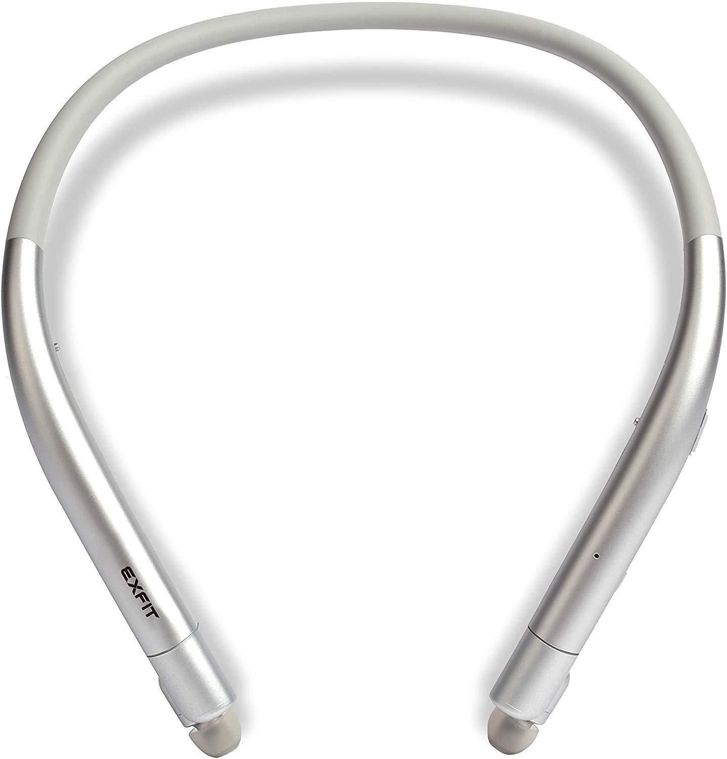 EXFIT BCS-700 Wireless Bluetooth Headphones, Retractable Earbuds, Splash and Sweat Resistant, Siri and Google Assistant Compatible, Auto Answer on Earbud Pull (Black)
