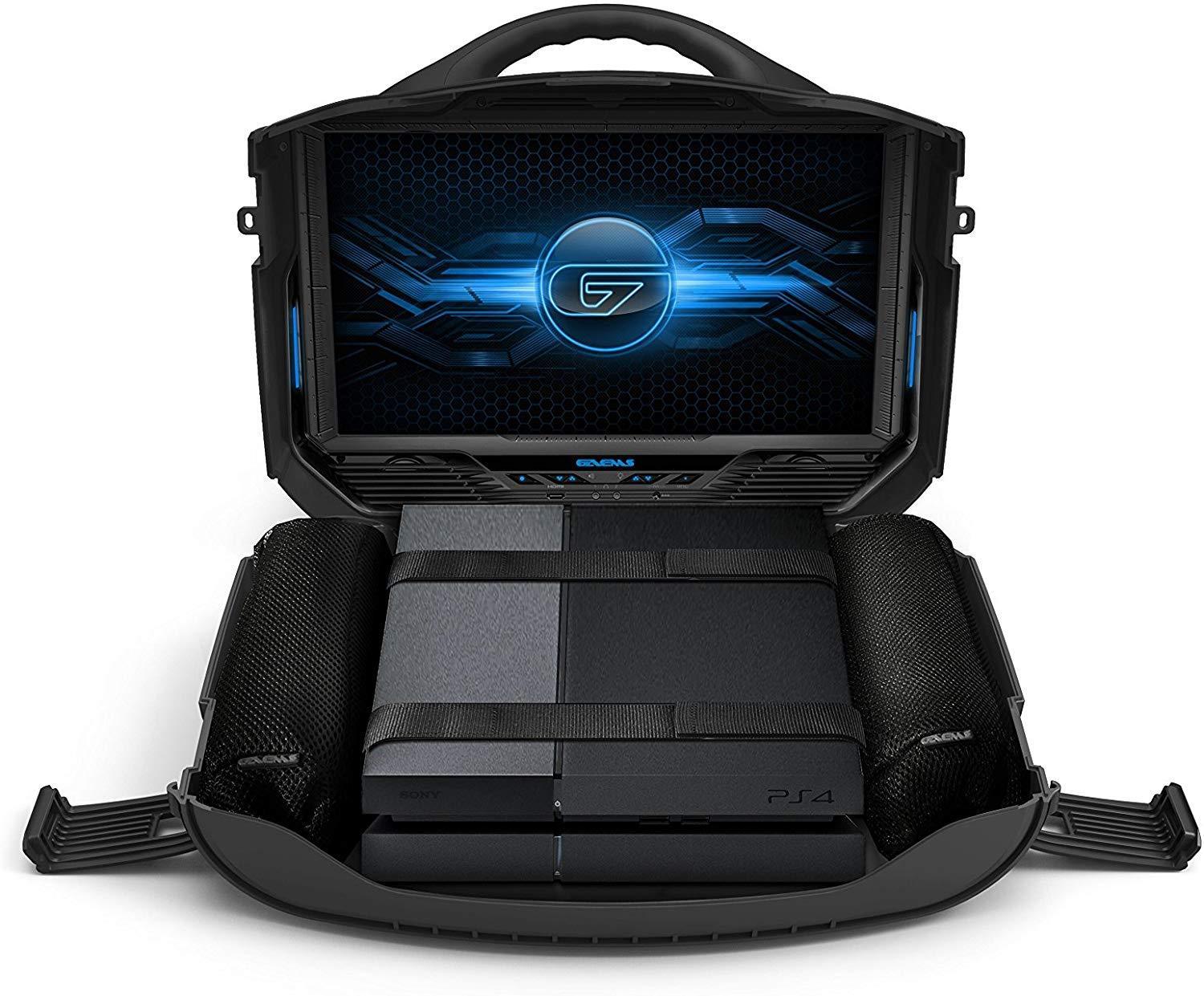• Interior case LED lighting. Product Dimensions 19.75 w x 7 d x 16.75 H inches. Compatibility: Xbox One , Xbox 360 E, Xbox 360 S, Xbox 360 Elite, PlayStation 4 and PlayStation 3 Slim