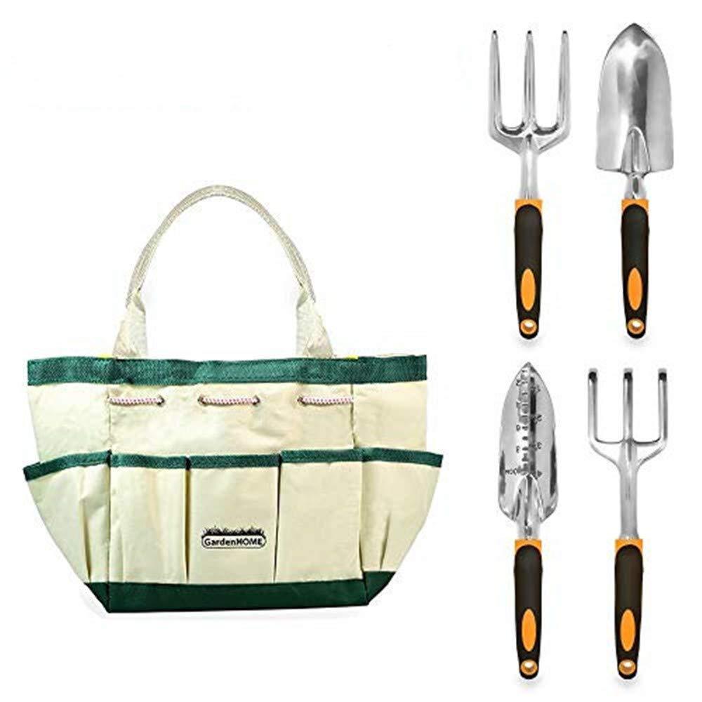 Gardening Tools, Garden Tools, Garden Tool Set, 5 Pieces Kit Gardening Gift Set, with 4 Heavy Duty Cast-Aluminium Tools and Garden Storage (3T)