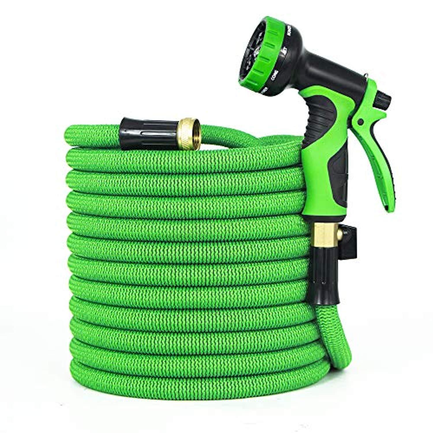• FREE 9 FUNCTIONS SPRAY NOZZLE: This high standard expanding garden hose comes with a high quality spray nozzle with 9 adjustable patterns and all brass connectors, excellent corrosion resistance and durable quality!