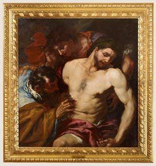Giovanni Battista Langetti was from Genoa in 1635 where in began his art training at the Genoese parish in Santa Sabina and lived his later years in Venice until his death in 1676. He has many works of art in museums. He created a number of Good Samaritan art pieces that can be found in a number of museums around the world. There is a similar work to this painting at the Holburne Museum in Bath England, as well as another one called The Good Samaritan Attending to a Traveler at the Natural Trust Museum at Osterley Park. The Ecce Homo painting is at the Bolton Library and Museum in northwest England. Giovanni Battista Langetti is a world renowned painter with many works in European museums around the world. He is known for specializing in biblical heroes, prophets, and philosophers. Langetti’s style is dark shadowy and obscure with a saturated color palette, and he is known to create many dramatic compositions like this one. His work has been compared to Michelangelo Caravaggio and Giuseppe de Ribera. This is your chance to own a museum quality piece.