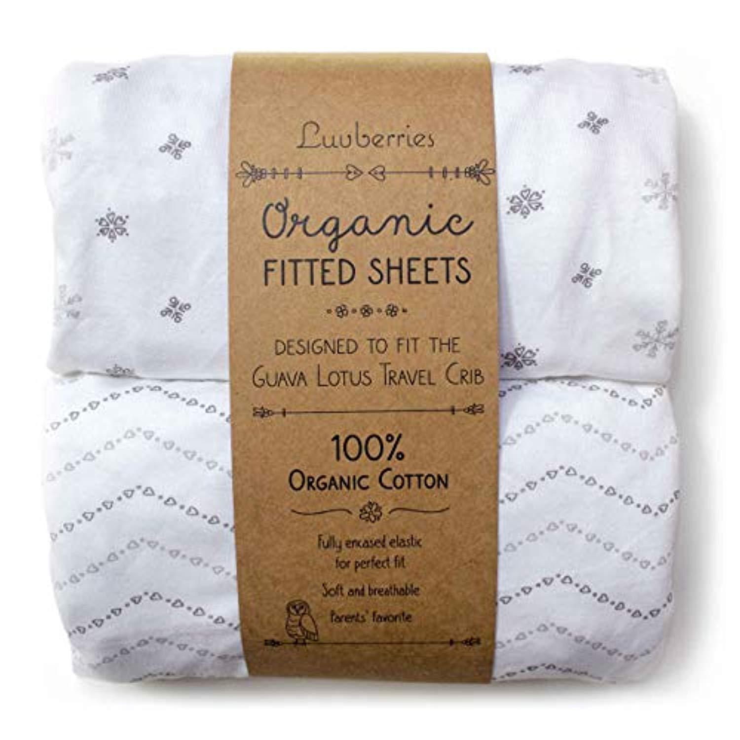 Compliment your little one's sweet dreams with these elegant, carefully-crafted, 100% Organic Cotton sheets, custom made to fit perfectly on the Guava Lotus Travel Crib Mattress (4 tabs model).