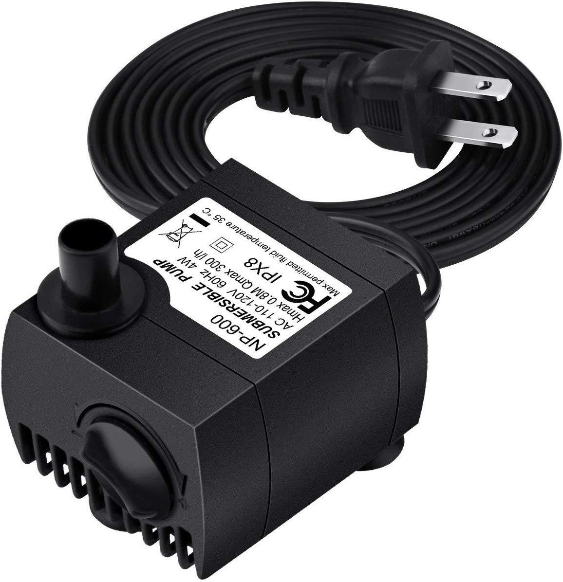 Homasy 80 GPH (300L/H, 4W) Submersible Water Pump, Ultra Quiet For Pond, Aquarium, Fish Tank Fountain, Powerful Water Pump with 5.9ft (1.8m) Power Cord