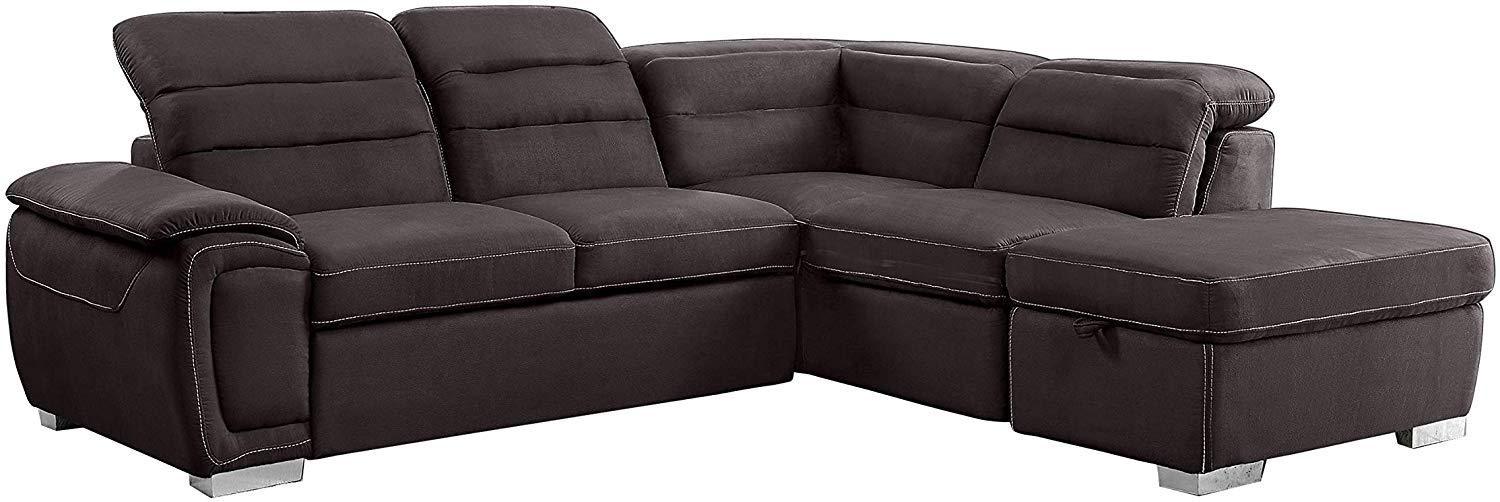 Homelegance Platina 103" Sectional Sofa with Pull Out Bed and Ottoman, Chocolate Fabric