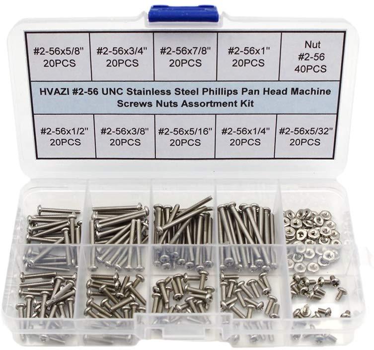 HVAZI #2-56 UNC Stainless Steel Phillips Pan Head Machine Screws Nuts Assortment Kit (#2-56UNC)