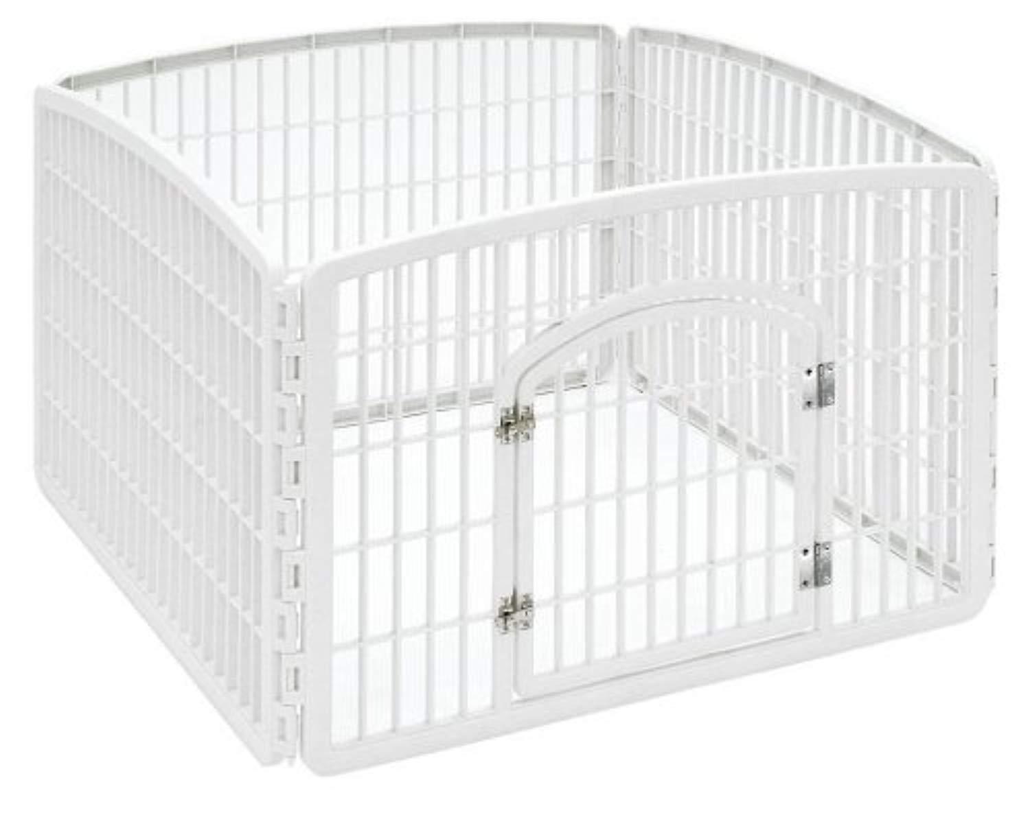 • The IRIS 24'' Exercise 4-Panel Dog Playpen with Door can be used for dog play yards, play gate, small dog fence, and more.