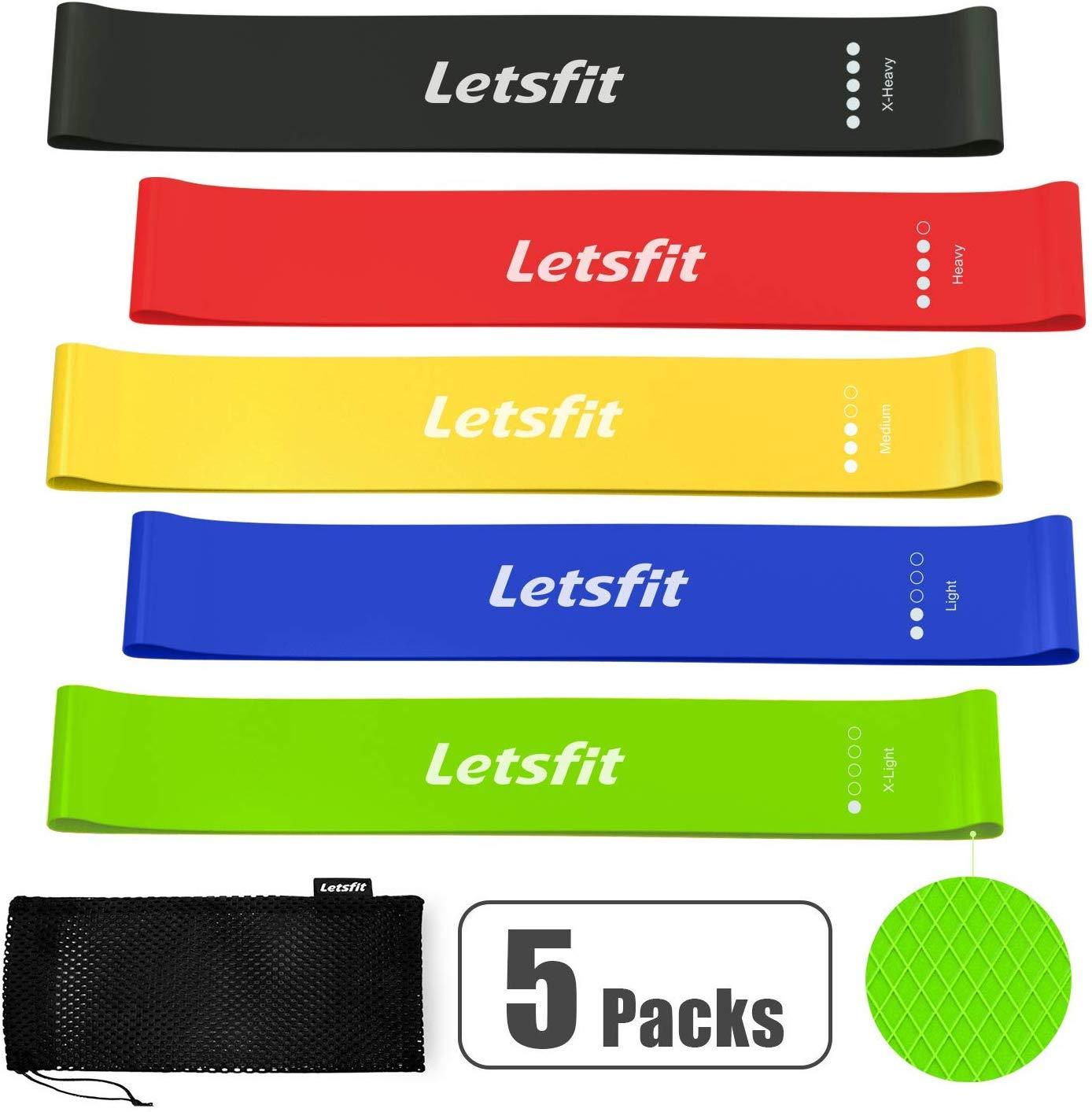 Letsfit Resistance Loop Bands, Resistance Exercise Bands for Home Fitness, Stretching, Strength Training, Physical Therapy, Natural Latex Workout Bands, Pilates Flexbands, 12" x 2"