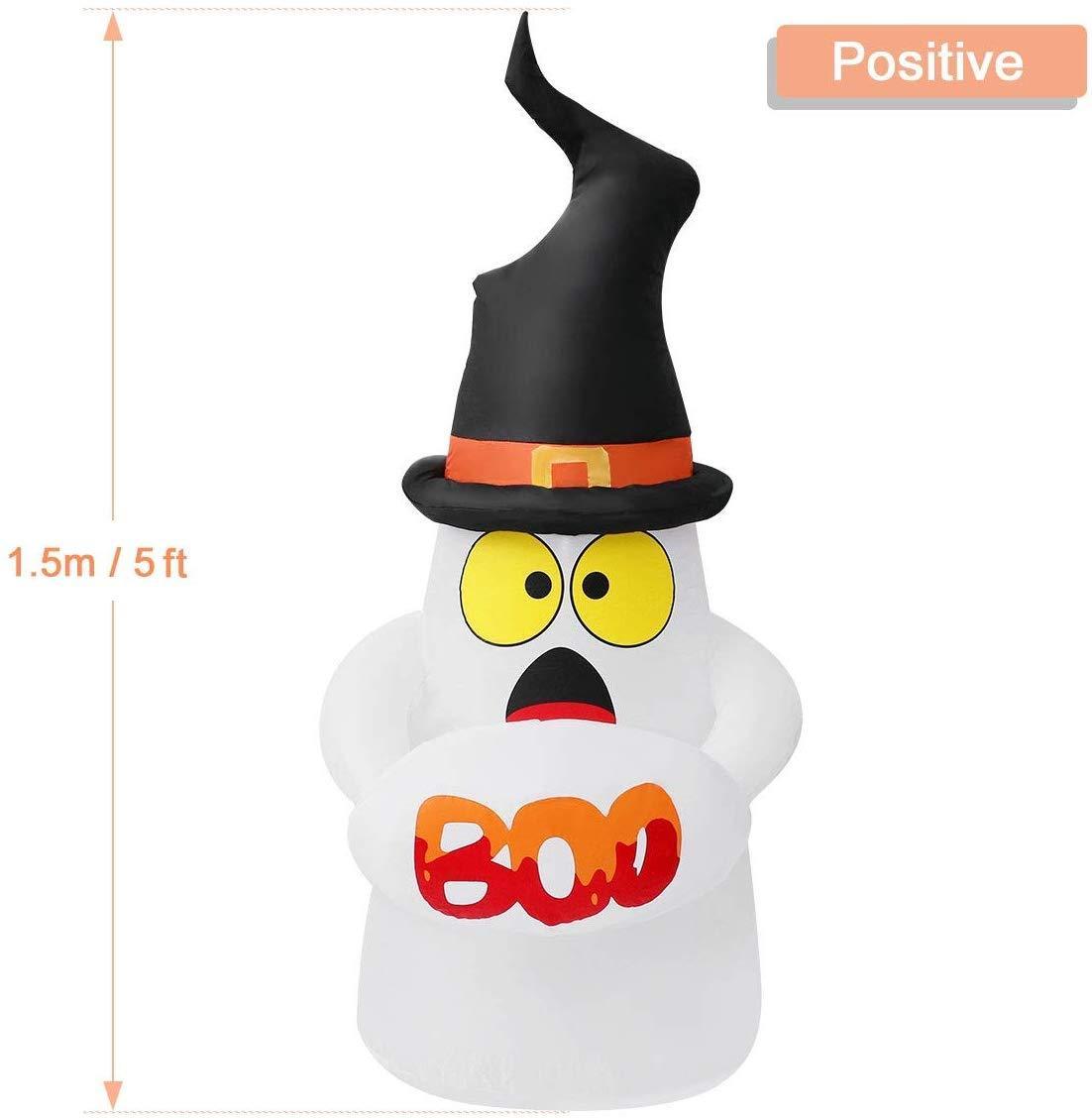 • UNIQUE BOO DESIGN FOR HALLOWEEN DECOR. The ghost wear a witch's hat looks like a trick-or-treater who's just gotten a fright. An adorable, kid friendly style. The perfect size 5ft, higher than other BOO Halloween Inflatables