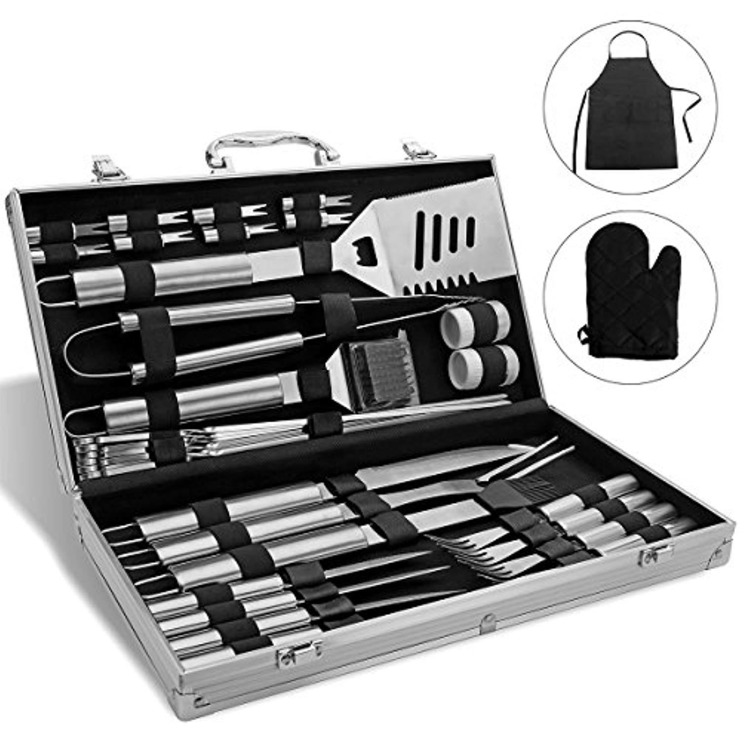 Monbix GL-70733 BBQ Grill Accessories, 33 Piece, Stainless Steel Utensils, Heavy Duty Grill Set with Aluminum Storage Case