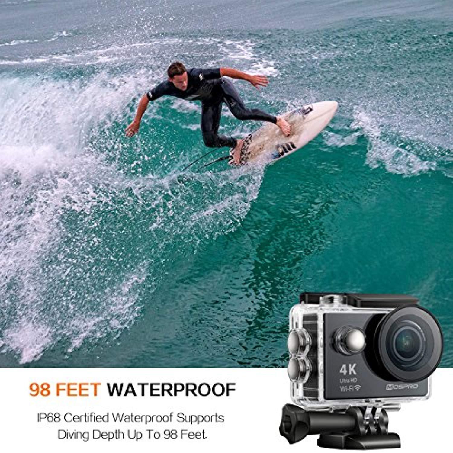 MOSPRO FT7500 Action Camera, 4K Ultra HD Wifi Waterproof 170 Degree Wide Angle 12 MP DV Camcorder Sports Camera with 2.4G Remote Control 2Pcs 1050mAh Batteries 19 Mounting Kits(2017 New)