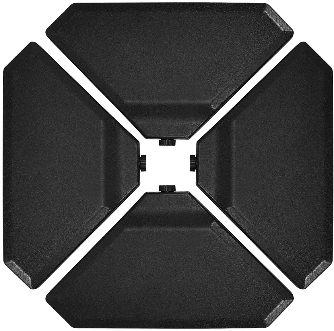 • Attractive Appearance for Decoration: Consisting of four separate triangular sections, this base weight forms a square by surrounding a cross base. The smooth black surface is stain resistant and easy to maintain. Most importantly, it can easily match the surrounding decor. The elegant appearance provides a more attractive way to secure a patio umbrella than a weight bag.