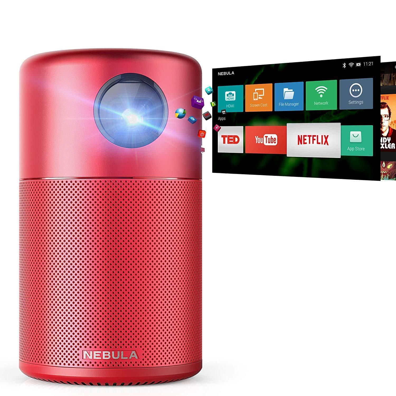 Nebula Capsule Smart Mini Projector, by Anker, Portable 100 ANSI lm High-Contrast Pocket Cinema with Wi-Fi, DLP, 360° Speaker, 100" Picture, Android 7.1, 4-Hour Video Playtime, and App