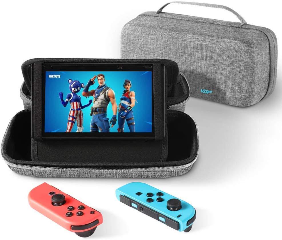 Nintendo Switch Case, VUP Switch Hard Cover Protective Travel Storage Shell for Nintendo Switch Console & Accessories with 18 Game Cartridges and Handle (Gray)