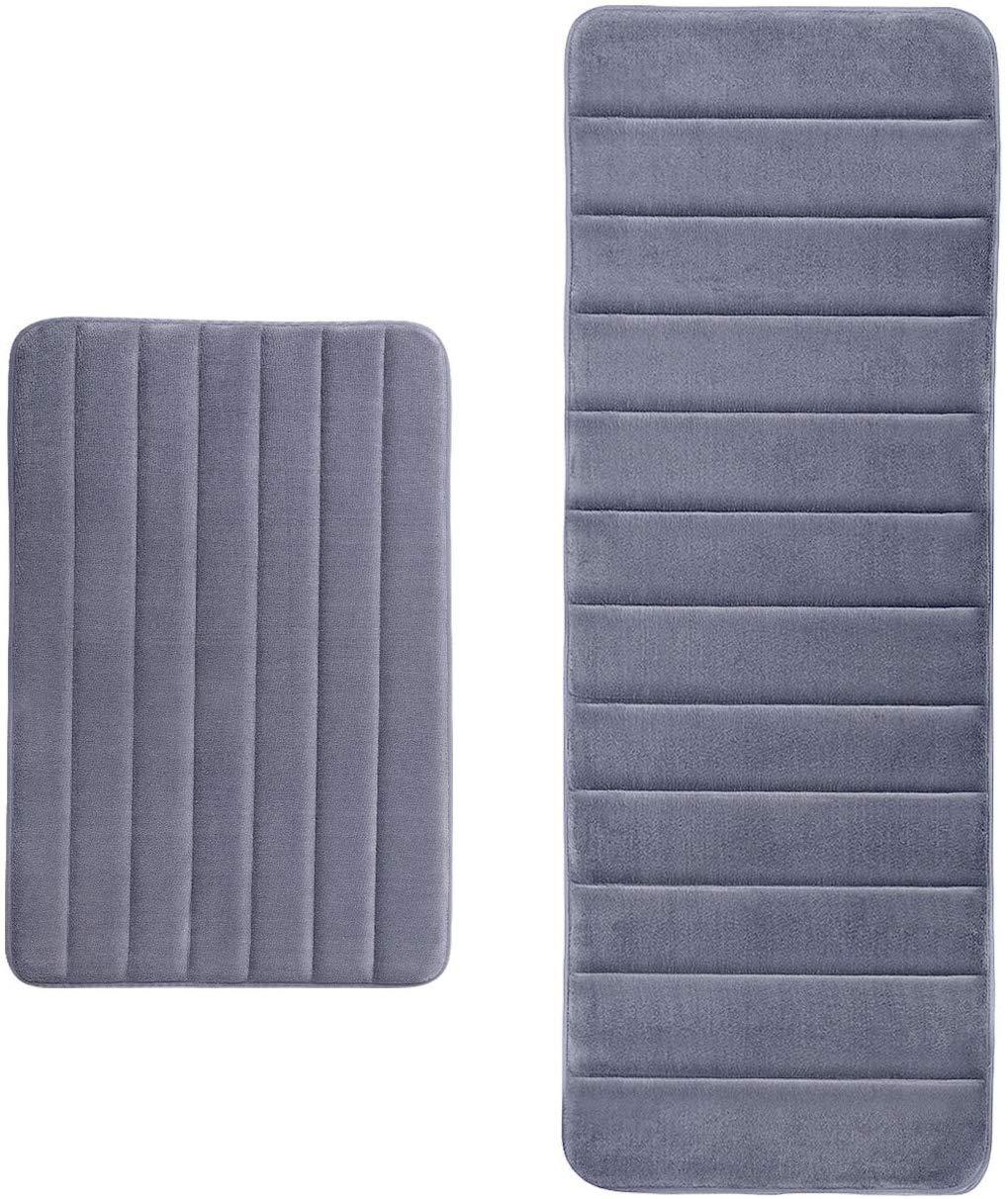 • ★ SOFT TOUCH * VERSATILITY: The KMAT extra soft 3-piece bathroom rugs and mats sets include Contour U-shaped toilet rug 20” X 24”, Small rectangular shaped bath mat 20” X 30” and a Larger sized rectangular shaped bath rug 17” X 47”.These bathroom mats are filled with 0.78 inches thick&breathable memory foam and outer layer is comfortable plush coral velvet.Toilet rug is tailored to fit around most commodes and two versatile bathroom mats are perfect for bedroom,kitchen,bathtub,vanity&guest suite