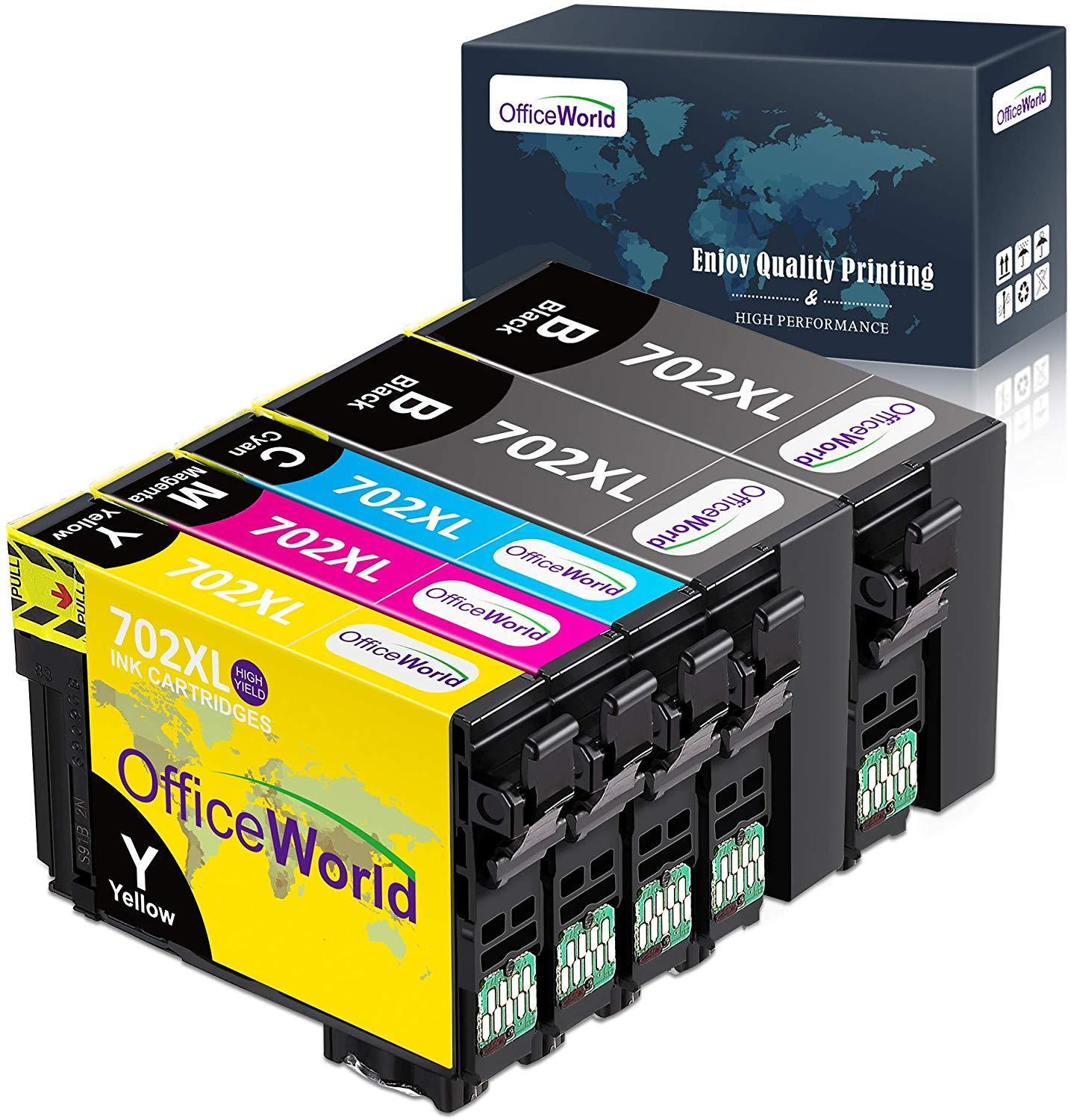 OfficeWorld Remanufactured Ink Cartridege Replacement for Epson 702 702XL 702 XL T702XL Used for Workforce Pro WF-3720 WF-3730 WF-3733 All-in-One Printer, 5 Pack(2BK/1C/1Y/1M)