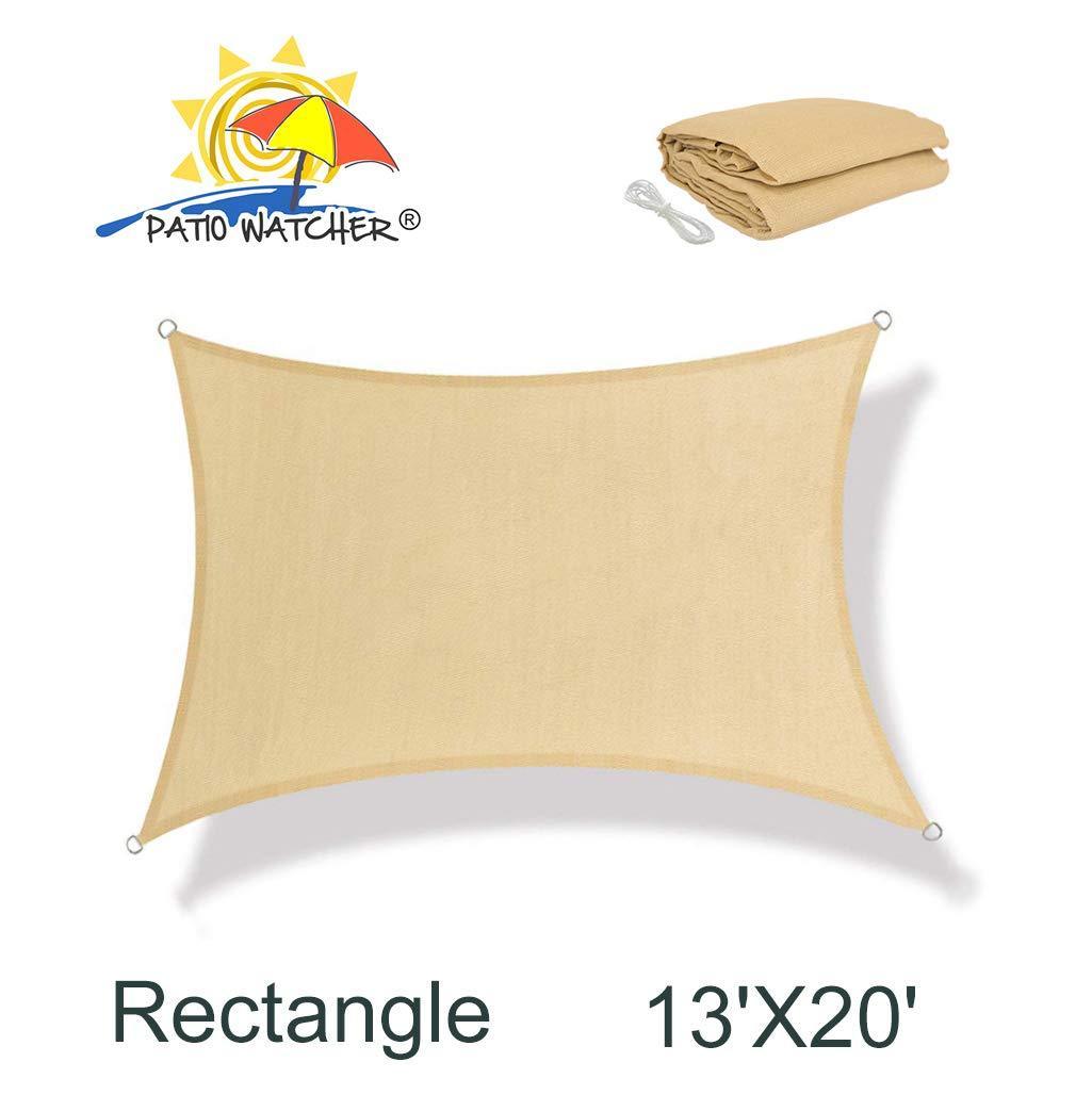 PATIO WATCHER 13' x 20' Rectangle Sun Sail Shade UV Block Shade Sail Perfect for Outdoor Patio Garden Sand