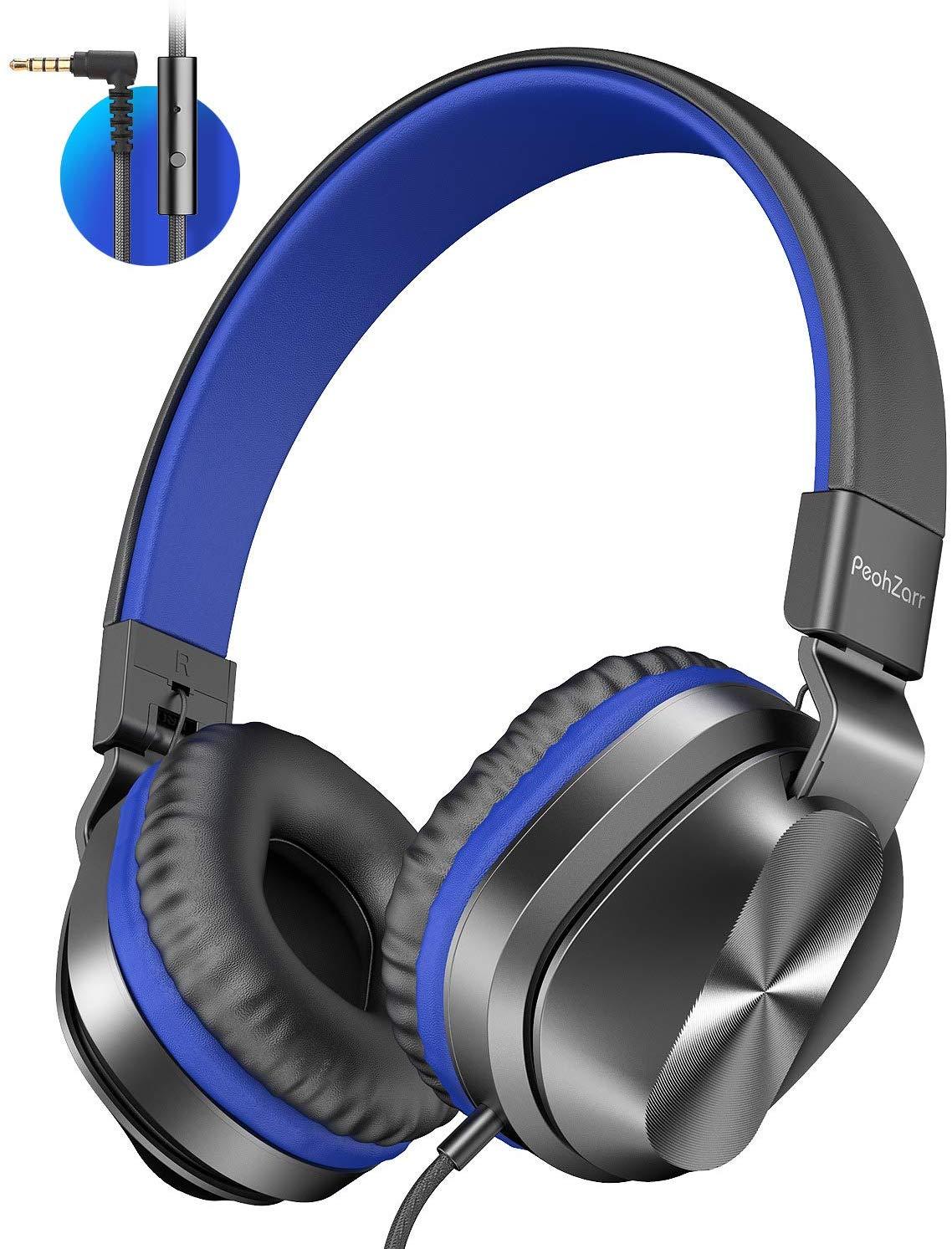 PeohZarr On-Ear Headphones with Microphone, Lightweight Folding Stereo Bass Headphones with 1.5M Tangle Free Cord, Portable Wired Headphones for Smartphone Tablet Laptop Computer MP3/4