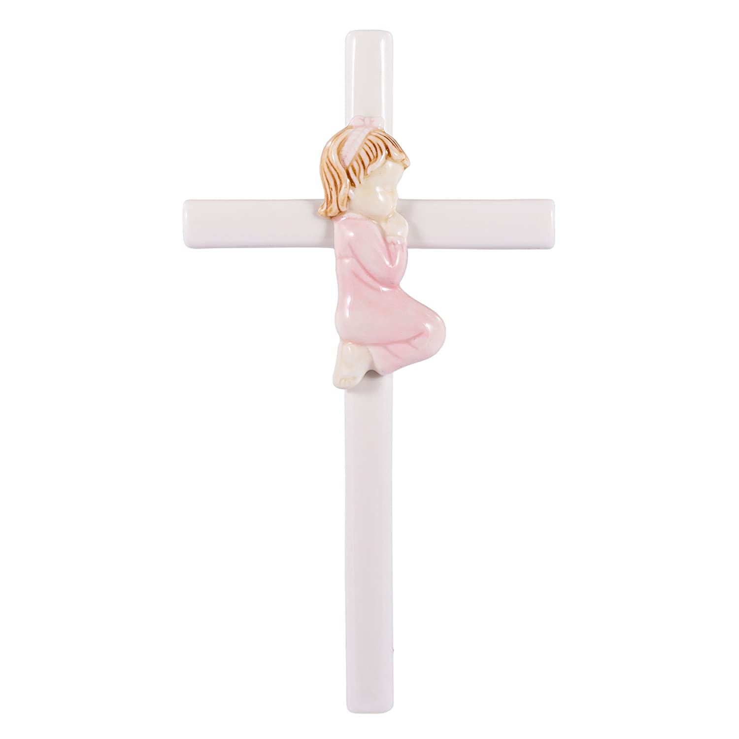 Praying Girl Hand Painted White Porcelain 7.5 inch Wall Cross by Christian Living