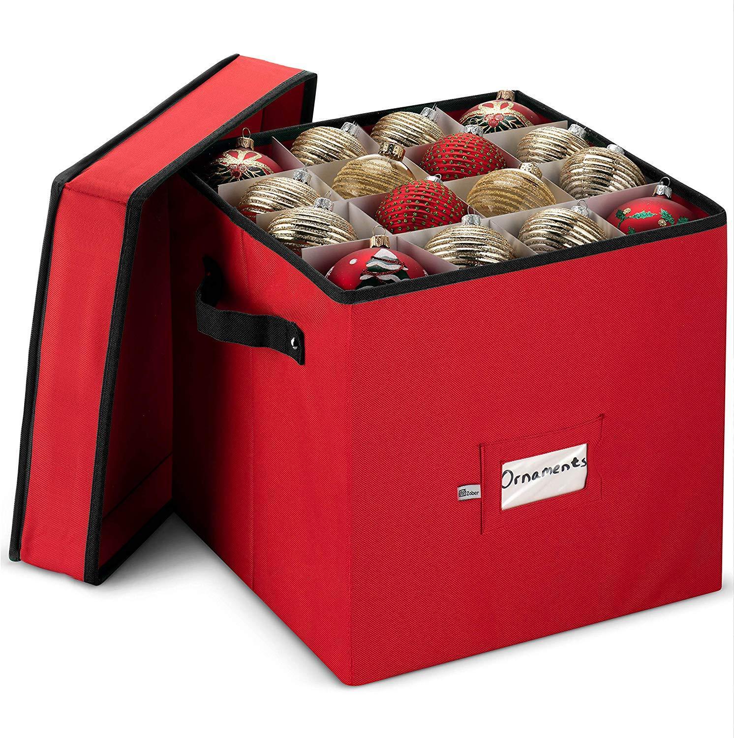Premium Christmas Ornament storage Box with Lid - 3-inch Compartment, Storage Container Keeps 64 Holiday Ornaments and Xmas Accessories by ZOBER