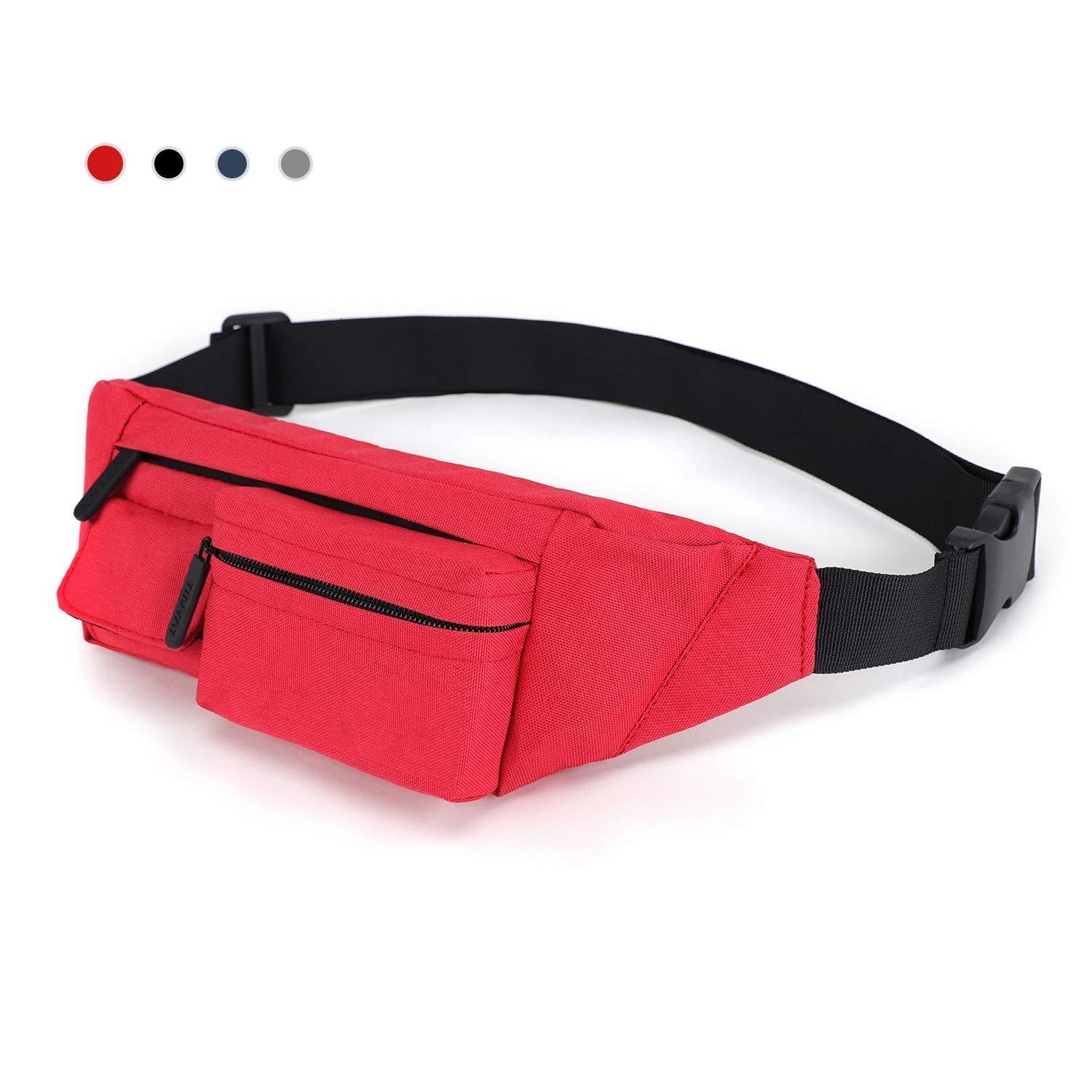 RedSwing Small Fanny Pack for Traveling Hiking Running Walking Outdoor Sports for Men Women, 4 Pockets Waist Pack Fits Most Smartphones, Black/Blue/Grey/Red