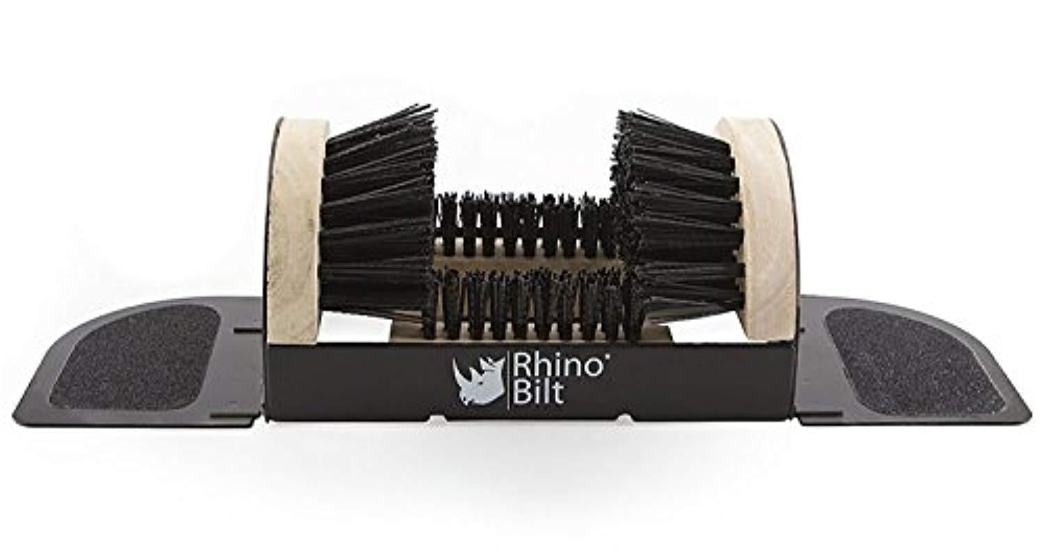 • NO MOUNTING REQUIRED Boot Scraper Folding Series from Rhino Bilt. Easy use for all ages – each side features a folding plate with traction to secure stationary foot in place, in wet or muddy weather.