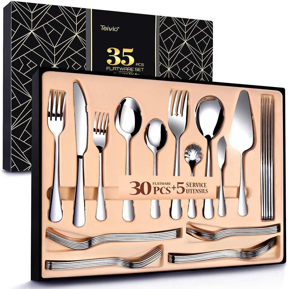Silverware Set Flatware Set Mirror Teivio Polished, Service for 6, Include Knife/Fork/Spoon with Gift Box (Silver