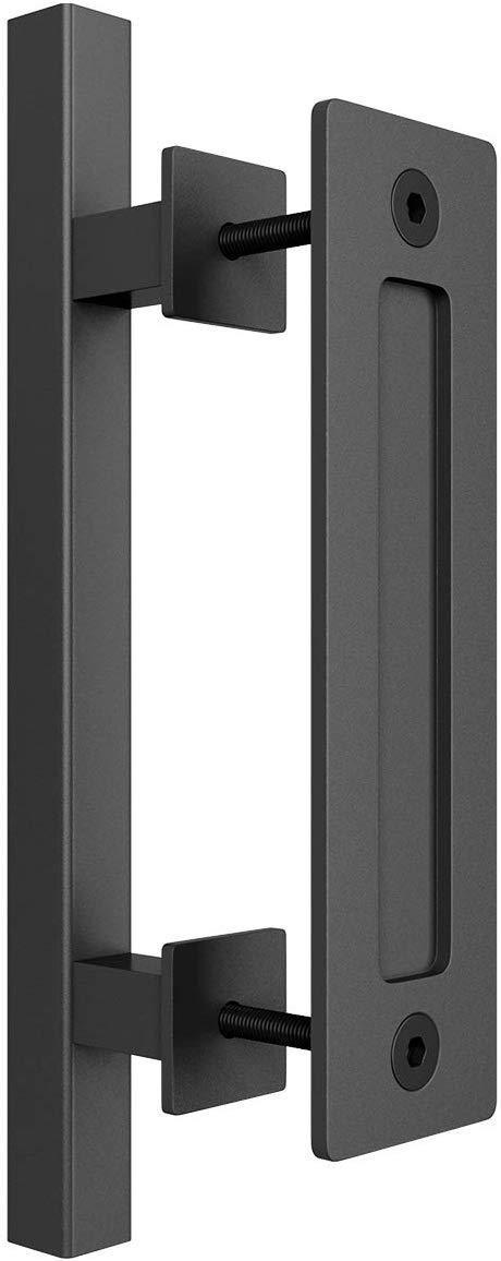 SMARTSTANDARD 12" Pull and Flush Square Door Handle Set Stainless Steel Door Pull Handle Sliding Barn Door Hardware Handle 2PCS