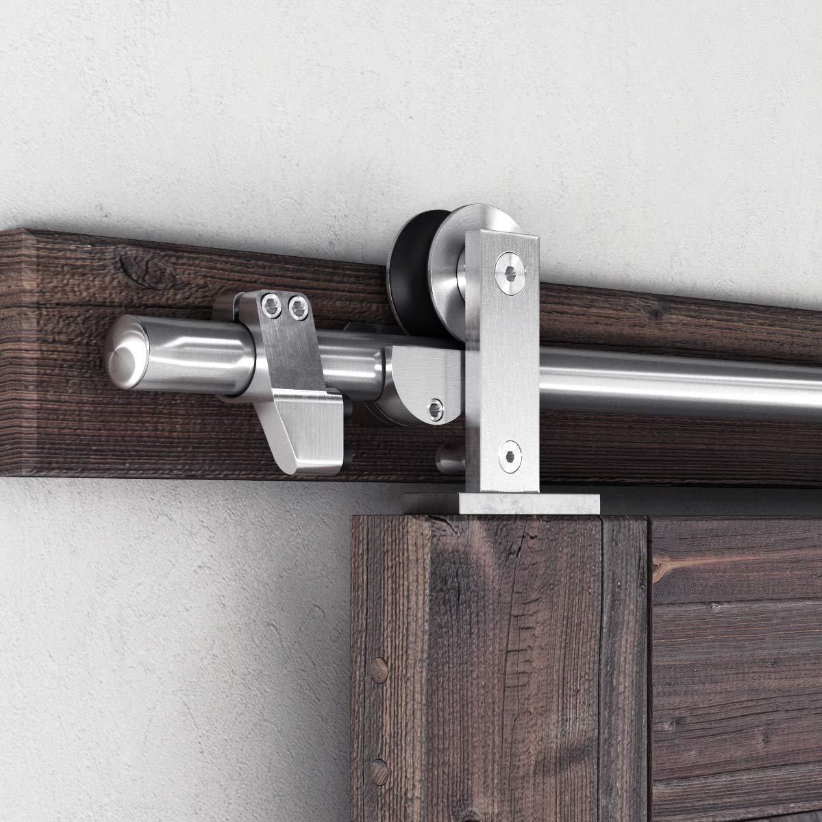 SMARTSTANDARD 8FT Top Mount Heavy Duty Sliding Barn Door Hardware Kit, Single Rail, Stainless Steel, Smoothly and Quietly, Simple and Easy to Install, Fit 42"-48" Wide DoorPanel (T Shape Hanger)