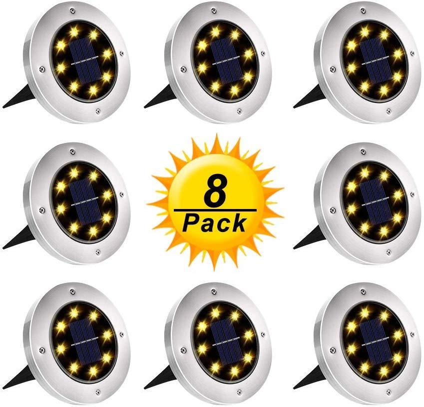 Solar Ground Lights, Upgraded Outdoor Garden Waterproof Bright in-Ground Lights for Lawn Pathway Yard Driveway, with 8 LED Warm White Lights (8 Pack)