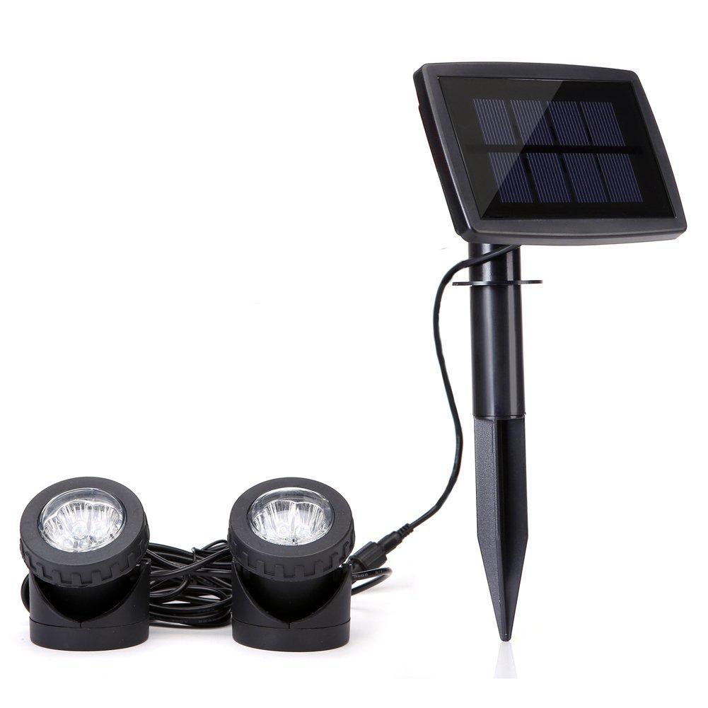 Solar Powered Spotlights with 2pcs Lamps Holder Waterproof Pond Lights for Ganden,Fountain,Patio, Lawn (White)