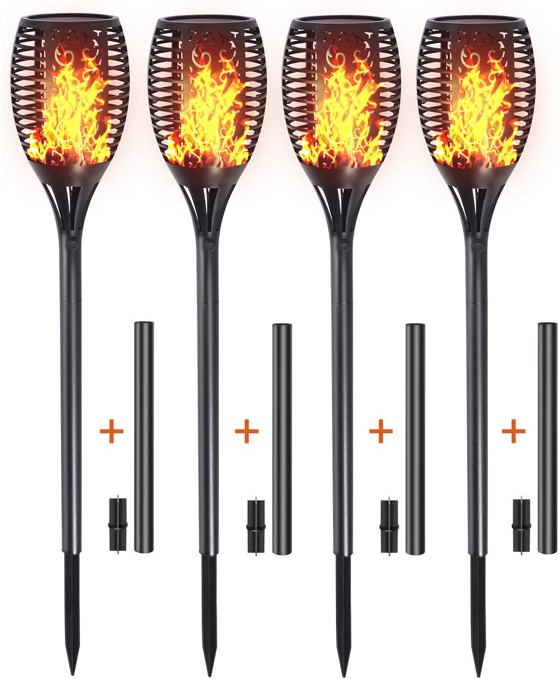 Permande Solar Torch Lights, Outdoor LED Lamp Flickering with Realistic Dancing Flame, Dusk-Dawn Christmas Decoration Lights for Garden/Patio/Deck/Driveway 4-PACK